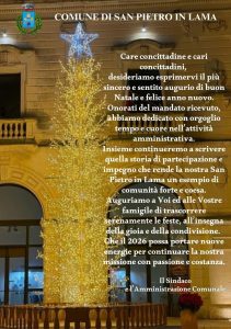 In occasione del Natale pubblichiamo gli auguri rivolti a tutti i cittadini di San Pietro in Lama