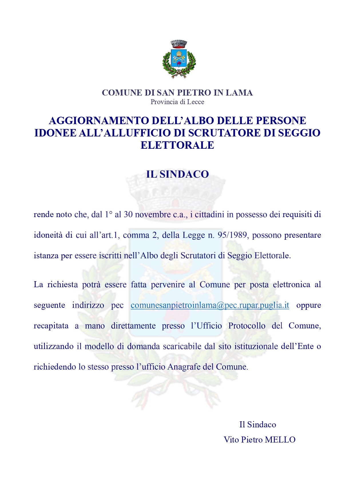 ISTANZA PER L’ISCRIZIONE NELL’ALBO DEGLI SCRUTATORI DI SEGGIO ELETTORALE
