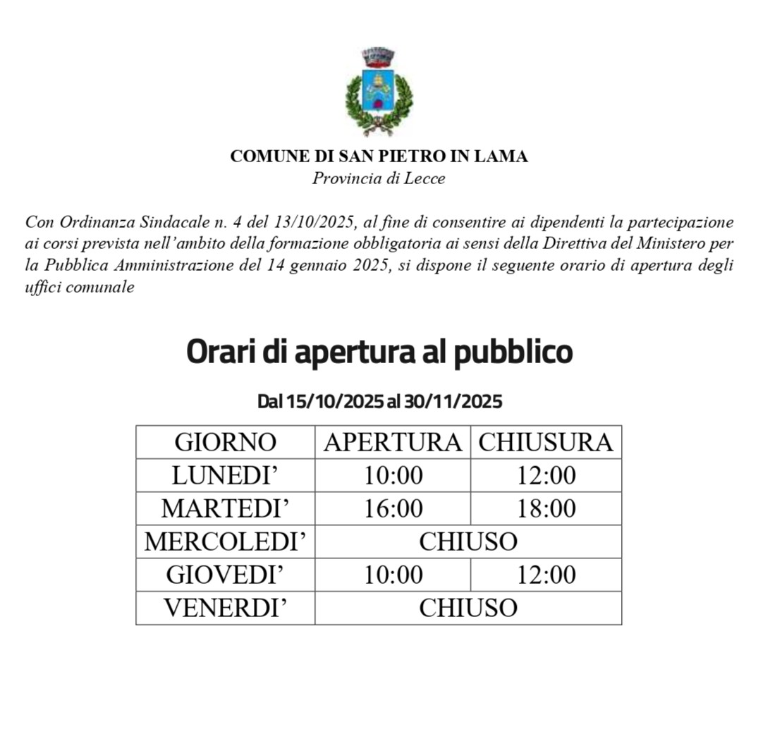 Ordinanza Sindacale n.4/2025 – chiusura al pubblico uffici comunali