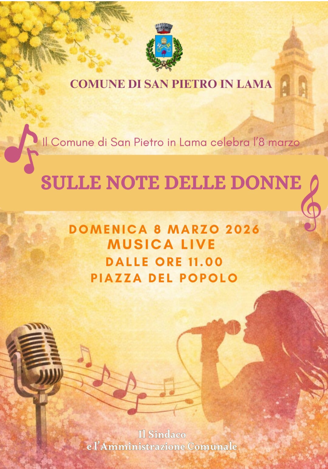 Il Comune di San Pietro in Lama celebra l'8 marzo "Sulle note delle Donne" Piazza del Popolo ore 11:00 Musica live